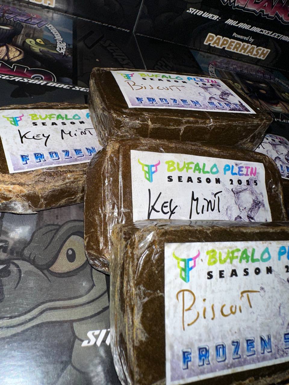 Il fresh frozen 2025 di Bufalo Plein, estratto dallo strain Key Mint, nasce da genetiche selezionate per la loro ricchezza aromatica e potenza cristallina.