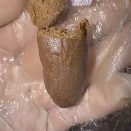 La consistenza Γ¨ densa e resinosa, con un aspetto compatto e brillante. Il colore spazia tra toni viola scuro e verde bosco, attraversato da riflessi ambrati che ricordano la linfa delle piante piΓΉ mature.