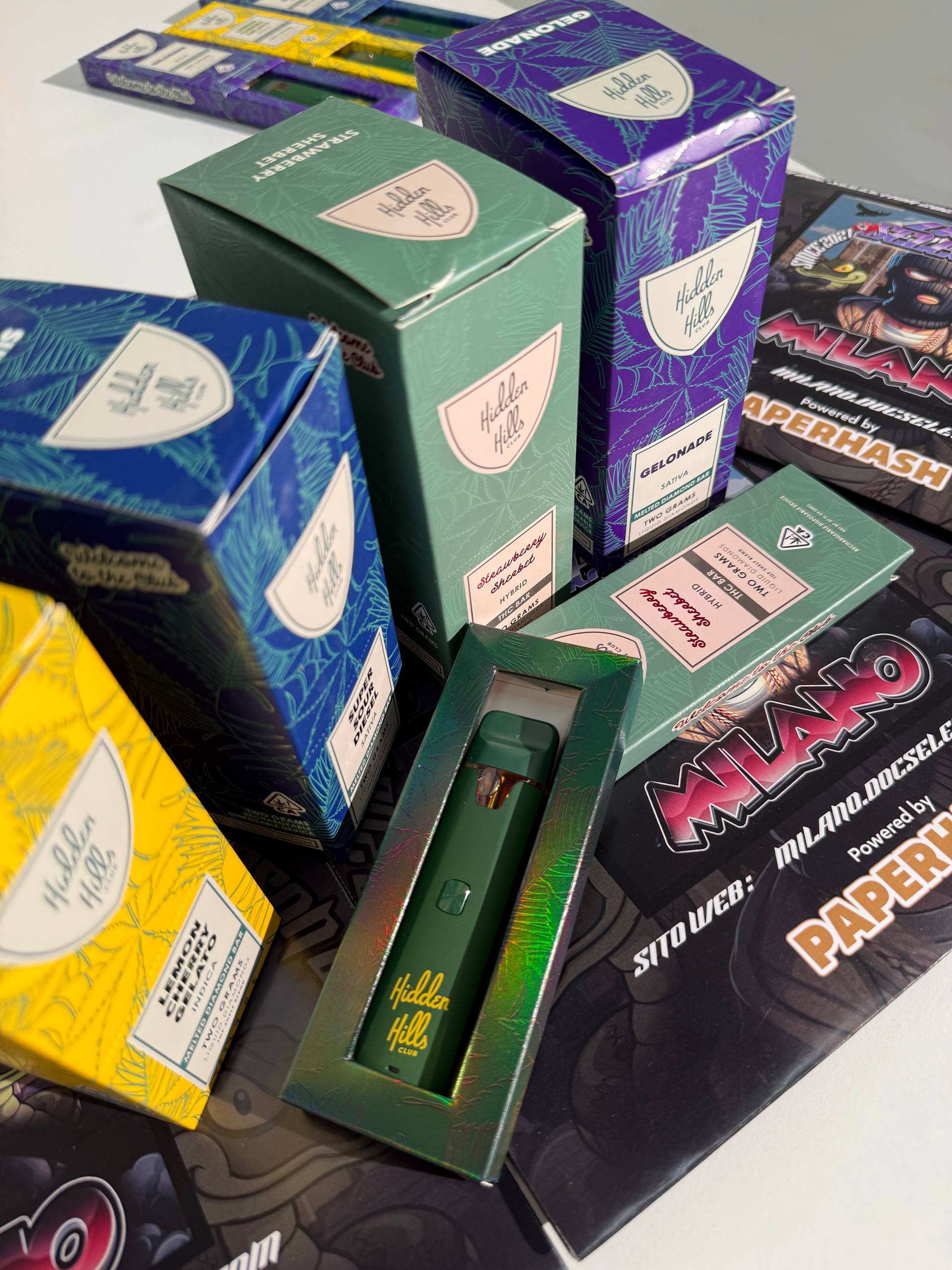 Il Melted Diamond Bar by The Hidden Hills Club nello strain Strawberry Sherbert è una disposable vape ricaricabile di altissima qualità, realizzata con la tecnologia esclusiva dei VVS Melted Liquid Diamonds — cristalli purissimi "sciolti" in un olio ultra-potent per preservare terpeni full-spectrum, cannabinoidi rari e un profilo aromatico autentico, senza solventi residui. Formato 2g, con blend premium per un'esperienza vaporosa densa, smooth e incredibilmente flavorful — il top per chi cerca un dessert cremoso e fruttato da vero indulgence.