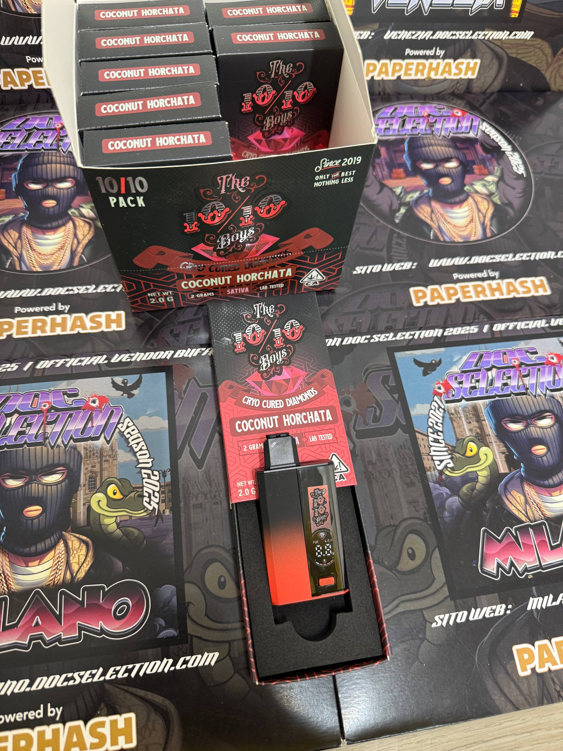 Il dispositivo Vape Cryo Cured by The 10/10 Boys strain Coconut Horchata è una penna ricaricabile di altissima qualità, realizzata con la tecnologia avanzata di estrazione Cryo Cured Diamonds che preserva integralmente il profilo terpenico completo, la potenza dei cannabinoidi e la purezza dell'estratto, senza solventi chimici. Disponibile in formato 2gr, offre un'esperienza vaporosa densa, smooth e incredibilmente flavorful, perfetta per chi cerca un hybrid cremoso e tropicale con vibrazioni da bevanda rinfrescante e golosa.